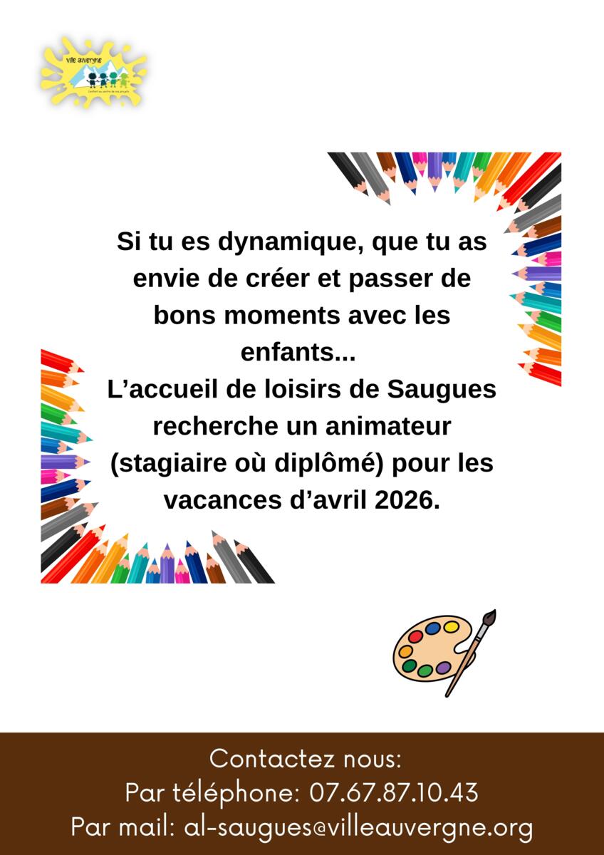 L'Accueil de Loisirs recruteđ€ 23/03/2026 L'Accueil de Loisirs de Saugues recrute pour les vacances d'avril —