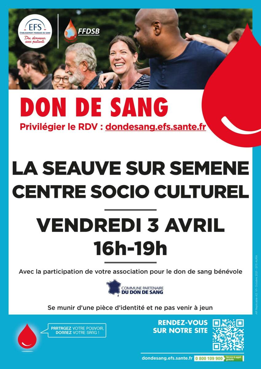 Votre mairie / Actualités / ❤COLLECTE DE SANG - SUR LA SEAUVE - CENTRE SOCIO CULTUREL