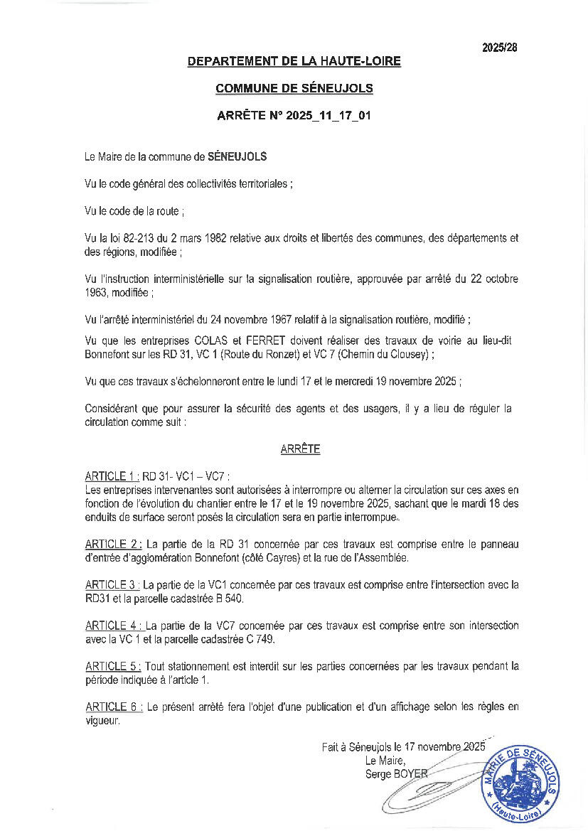 Travaux voirie Bonnefont-Ronzet