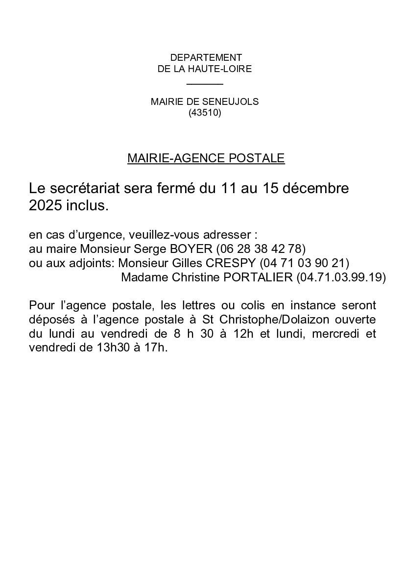 Fermeture secrétariat de mairie