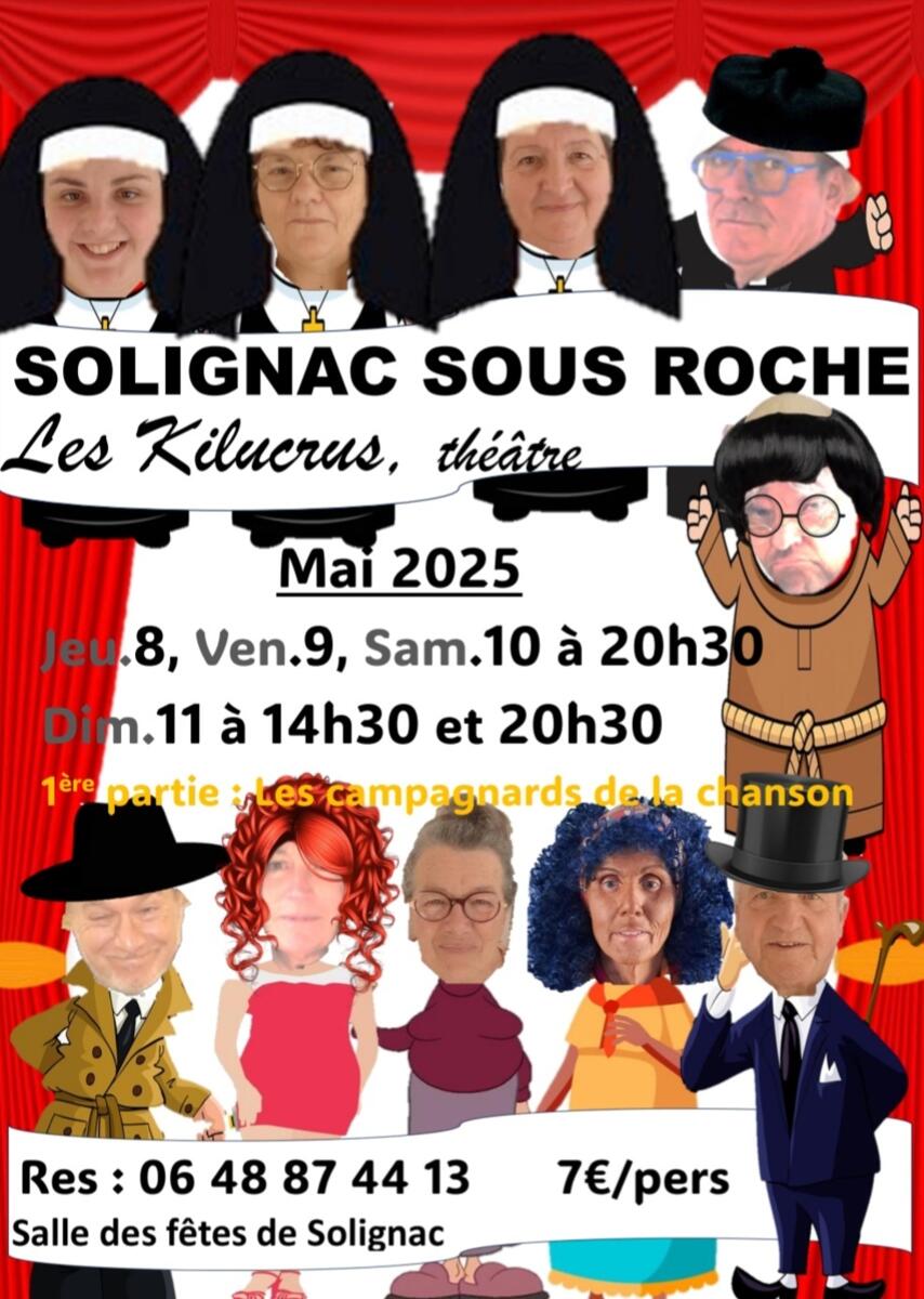 CHANT ET THÉÂTRE "LES KILUCRUS" À SOLIGNAC réservez vite 29/04/2025 Pensez à réserver rapidement 0648874413 8- 9-10 et 11 Mai