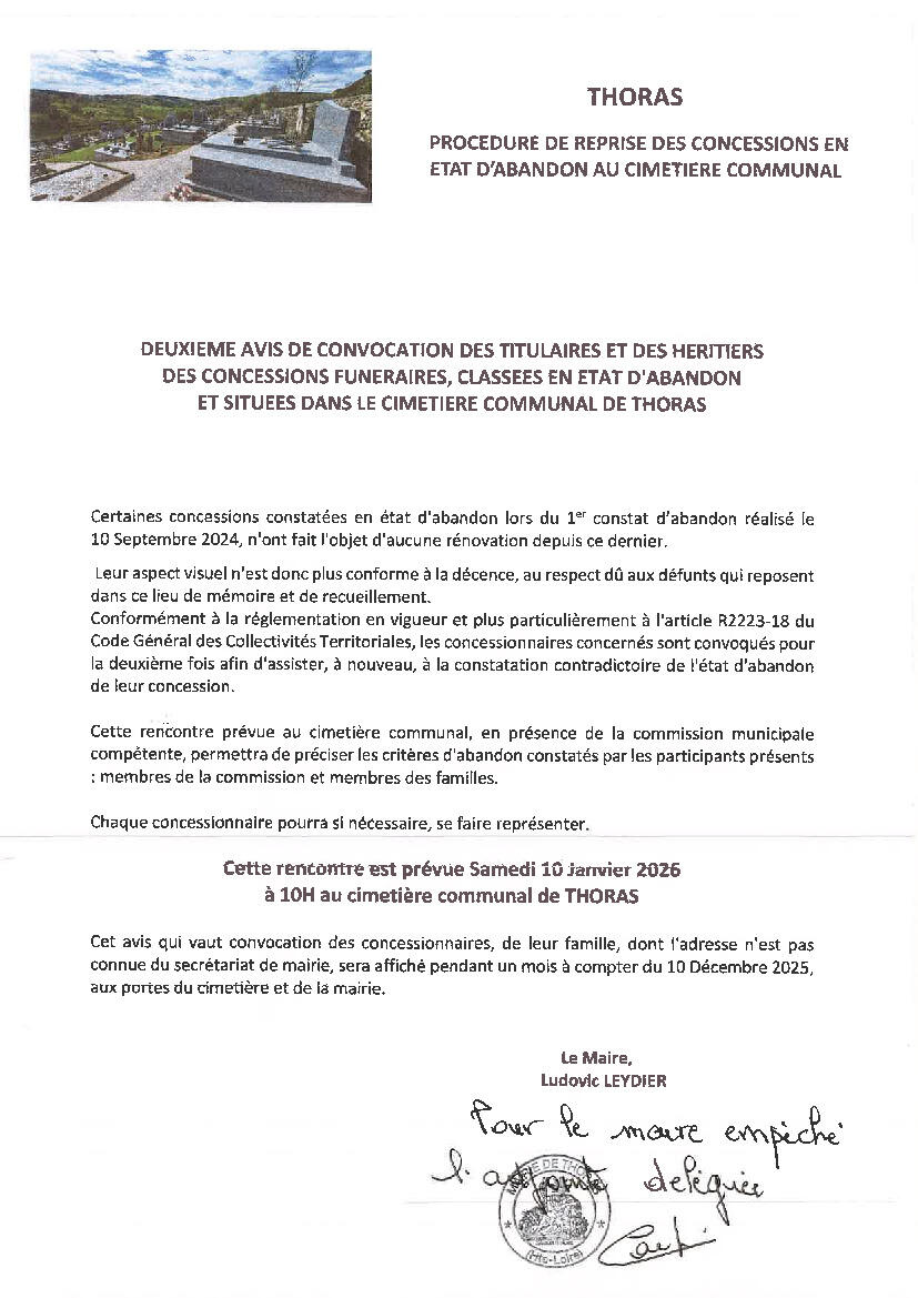 CONCESSIONS EN ETAT D'ABANDON - 2ème AVIS DE CONVOCATION