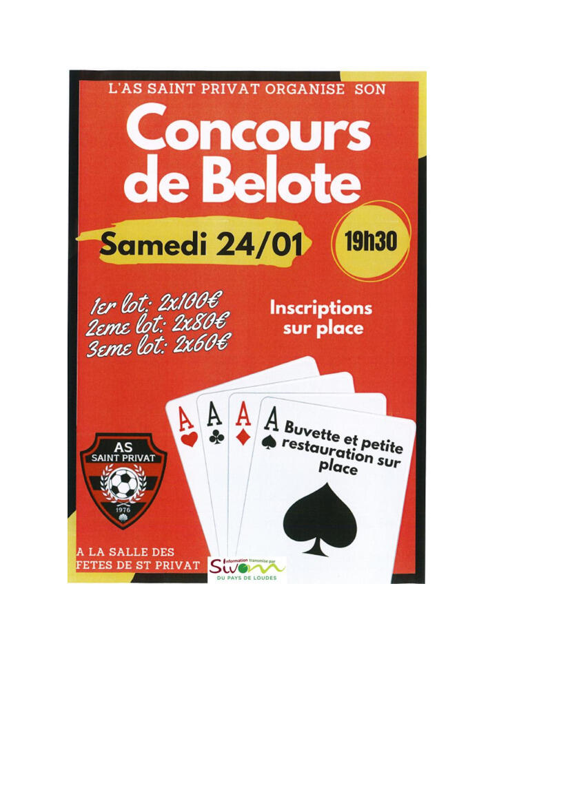 ♠️ Concours de Belote – St Privat d’Allier ♥️