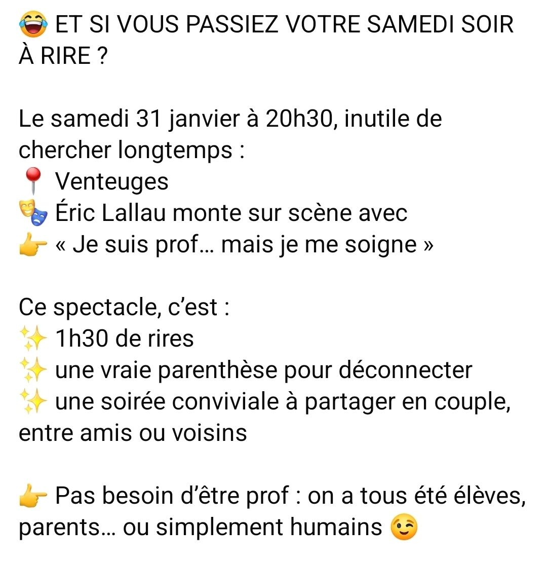 Spectacle humoristique le 31/01/2026 à Venteuges