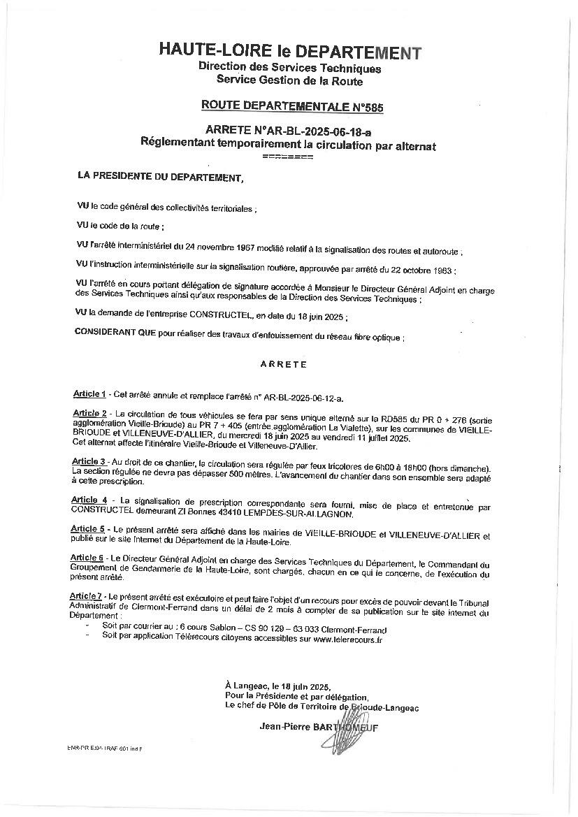 Votre mairie / Actualités / ROUTE DEPARTEMENTALRE N° 585