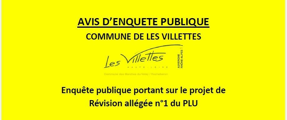 - Par courrier postal avant le 4 mai 2026 à 17h30 à l’attention de Mme la commissaire enquêtrice au siège de l’enquête Mairie, Place de la Mairie, 43600 Les Villettes ;