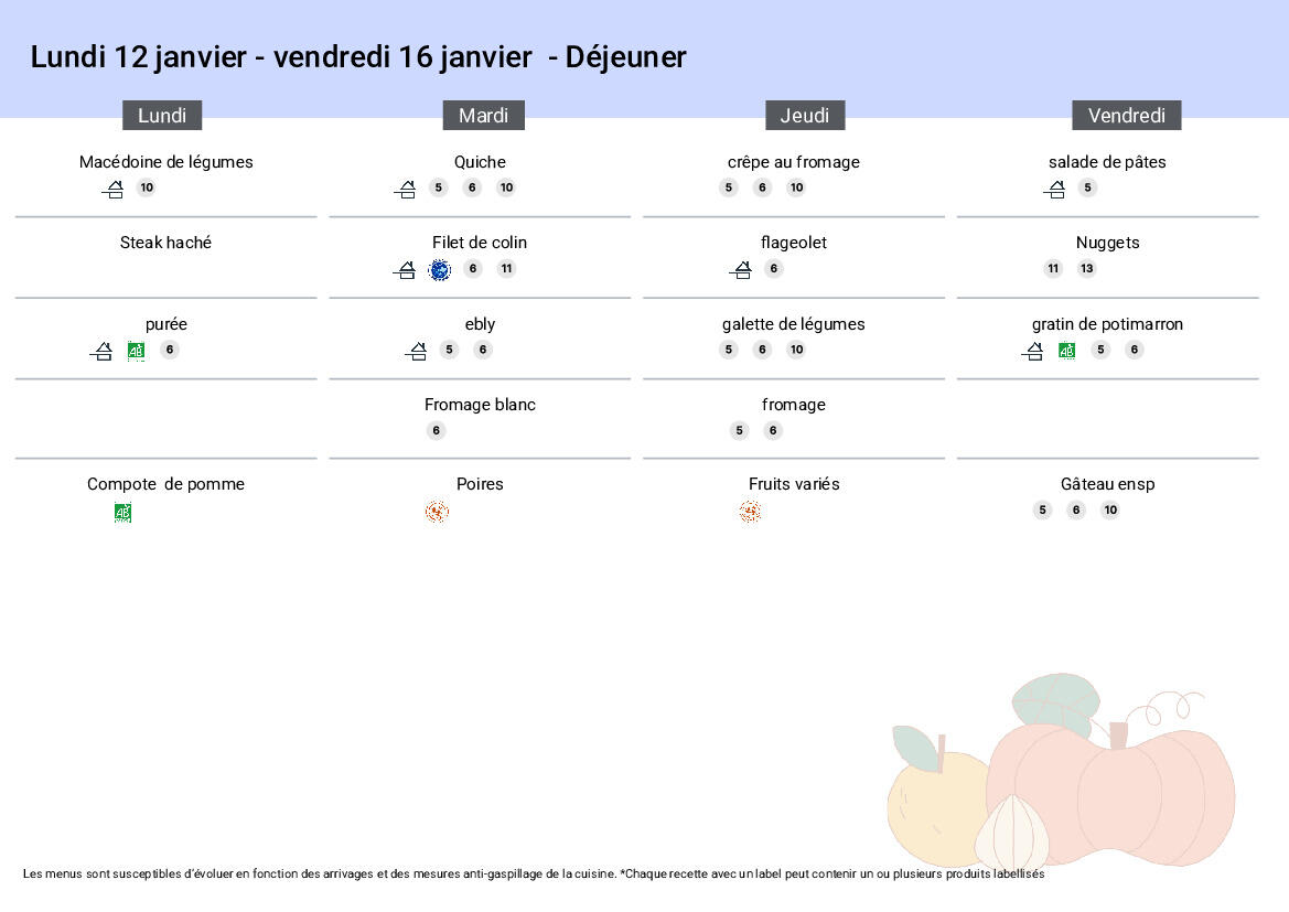menus restauration scolaire