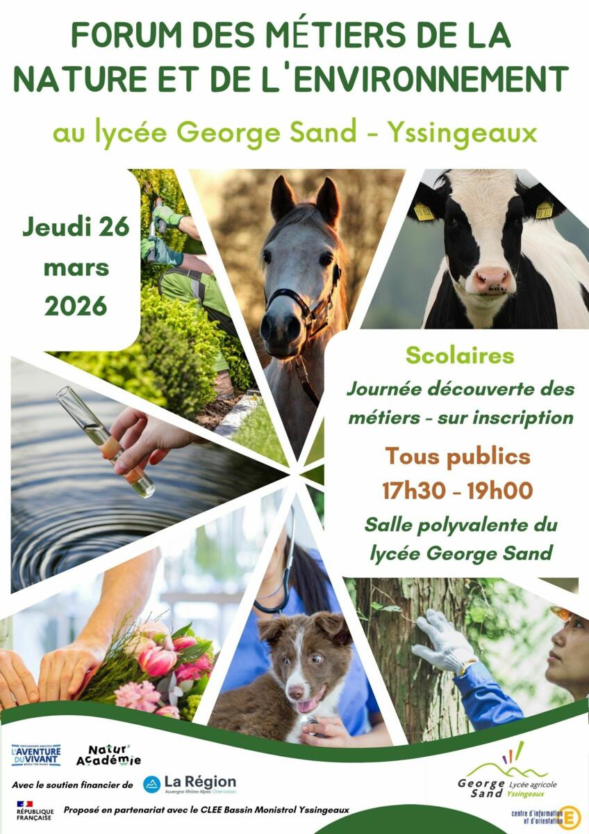 26 mars 2026 17:30 - 19:00 Forum des métiers de la nature et de l'environnement - le 26 mars 2026 à Yssingeaux Voir plus