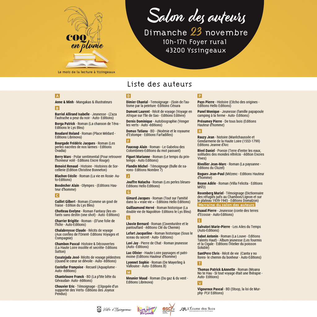 Programme du salon des auteurs et liste des auteurs présents sur ce lien 👇