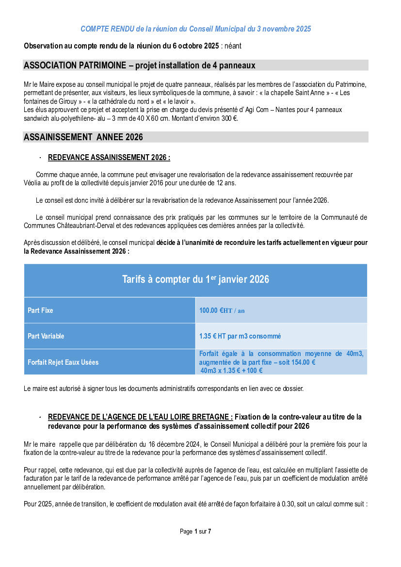 COMPTE RENDU DERNIER CONSEIL MUNICIPAL