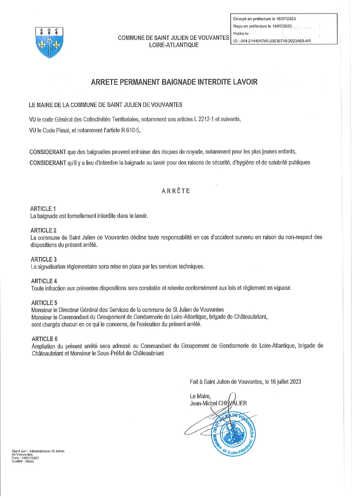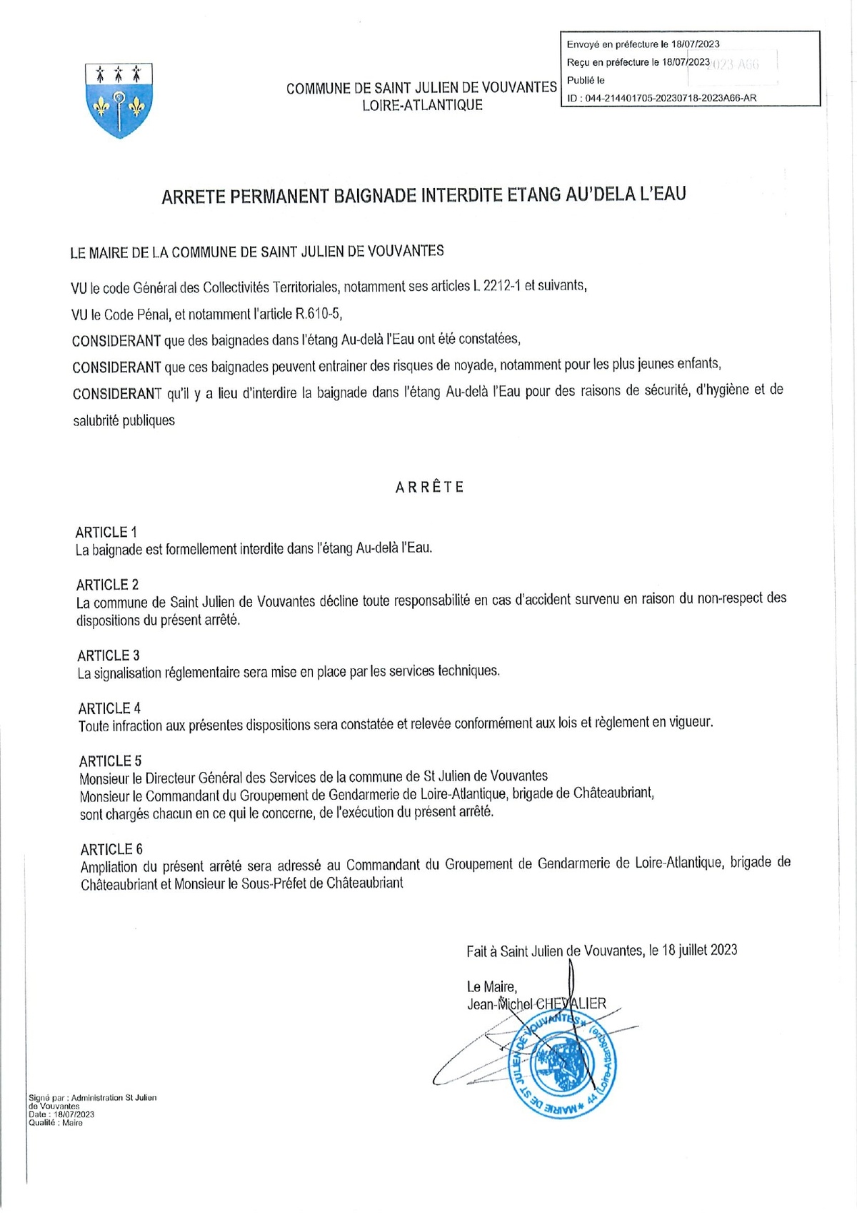 Votre mairie / Actualités / BAIGNADE INTERDITE