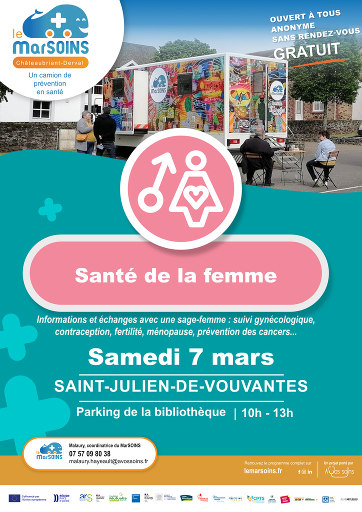 LES MARSOINS 03/03/2026 SAMEDI 7 MARS 2026 DE 10 HEURES A 13 HEURES PARKING DE LA BIBLIOTHÈQUE SANTÉ DE LA FEMME