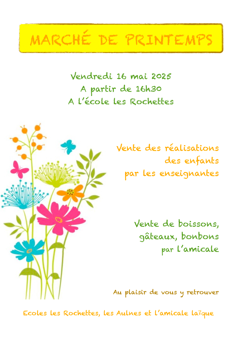 MARCHE DE PRINTEMPS 13/05/2025 VENDREDI 16 MAI 2025 A PARTIR DE 16H30 ECOLE DES ROCHETTES Source : Mairie de Saint-Julien-de-Vouvantes