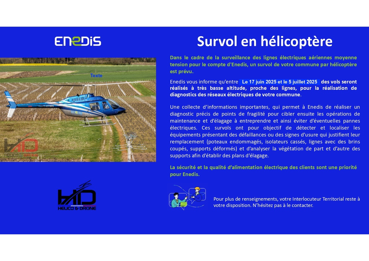 SURVOL HELICOPTERE ENEDIS 18/06/2025 SURVOL DE LA COMMUNE PAR UN HELICOPTERE ENEDIS ENTRE LE 17 JUIN ET LE 5 JUILLET 2025 Source : Mairie de Saint-Julien-de-Vouvantes
