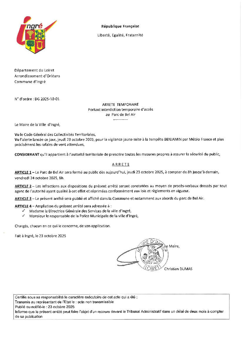 ALERTE ORAGES - FERMETURE PARC BEL AIR DÈS 16H