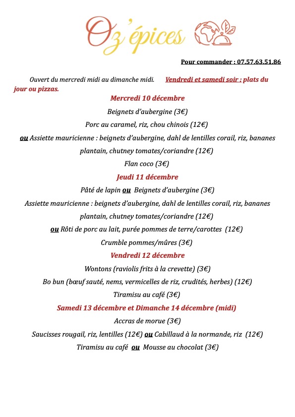 / Menu au Couderc du mercredi 10 au dimanche 14 décembre