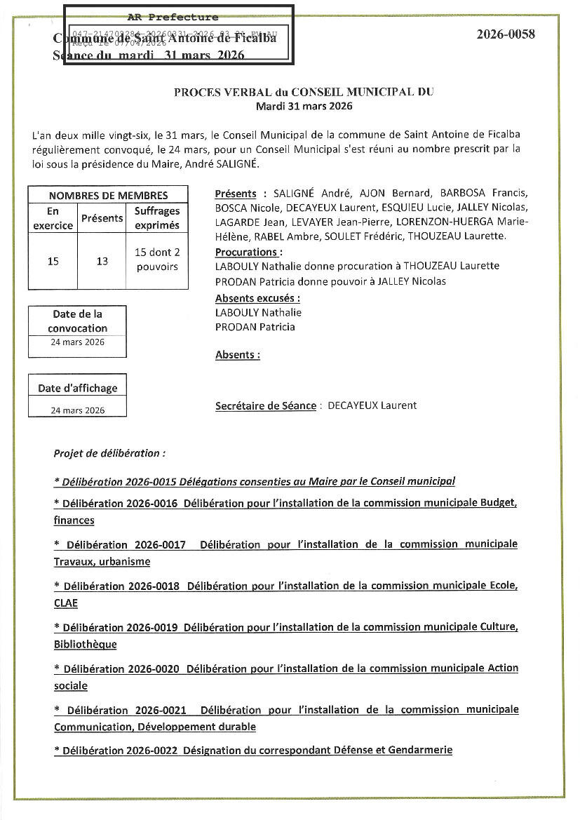 Procès Verbal du Conseil Municipal du 31 mars 2026