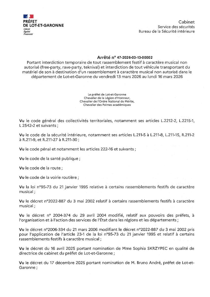 La Préfecture de Lot-et-Garonne vous informe :