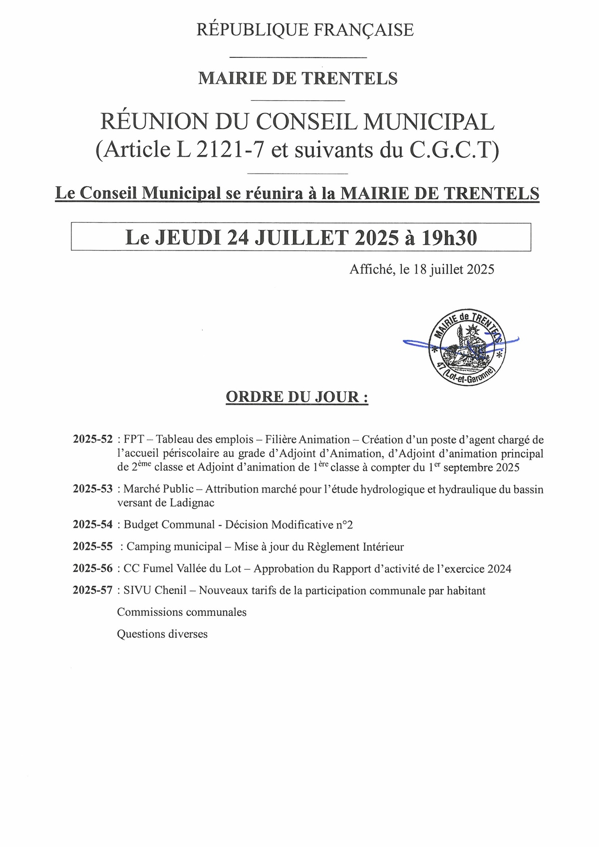 Votre mairie / Actualités / Conseil Municipal du jeudi 24 juillet 2025