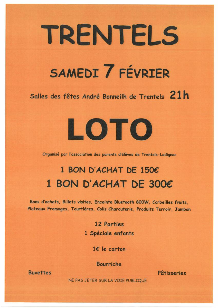 à une SOIREE LOTO à la Salle des Fêtes de Trentels