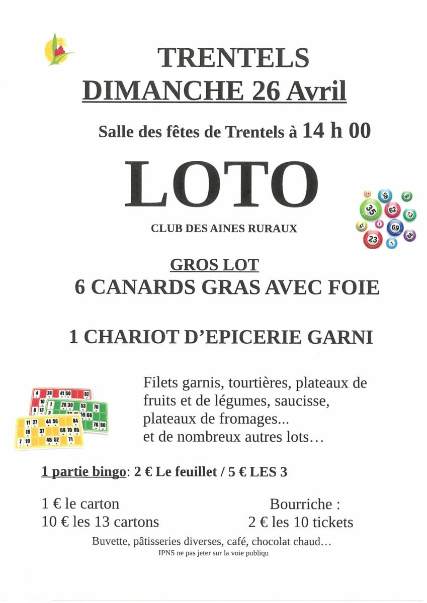 Votre mairie / Actualités / LOTO LE TREFLE Club des aînés ruraux