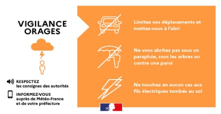 - Violents orages susceptibles de provoquer localement des dégâts importants.
