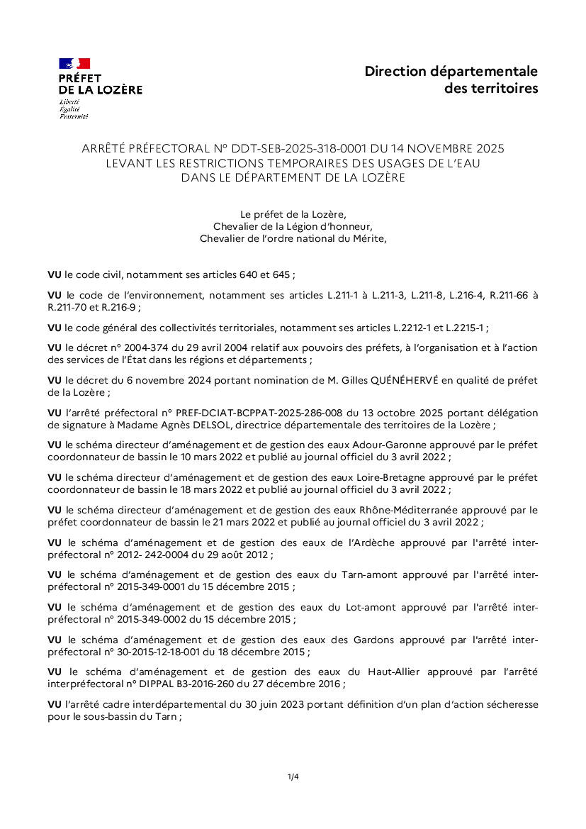 Sécheresse en Lozère - Levée des restrictions