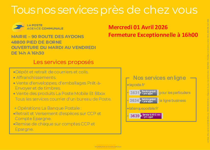Agence Postale PDB Fermeture 16h00 Mercredi 1er Avril
