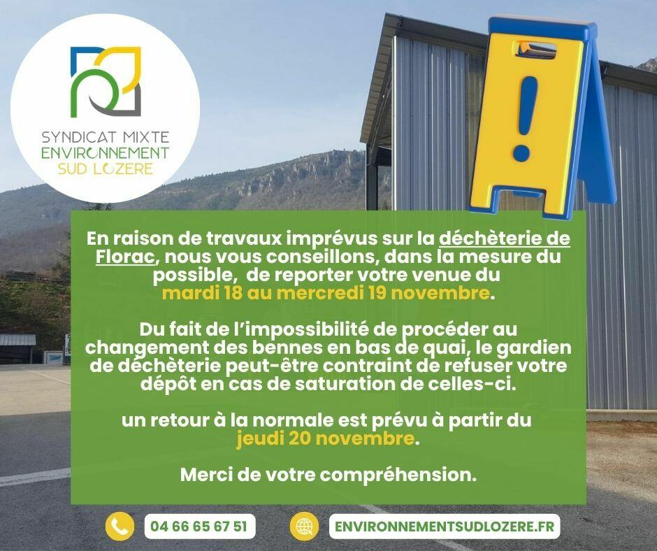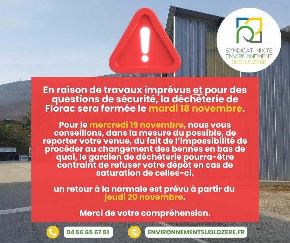 FERMETURE EXCEPTIONNELLE DE LA DECHETERIE DE FLORAC 18/11