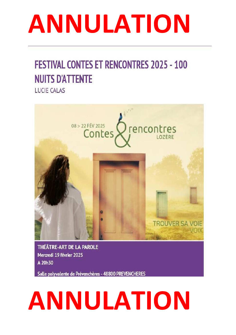 ANNULATION SOIREE CONTES ET RENCONTRE PREVENCHERES
