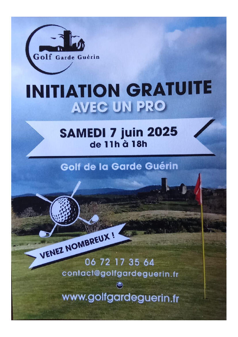 L'association Golf Garde Guérin vous invite à une initiation avec un pro le samedi 7 juin 2025 de 11h à 18h.
