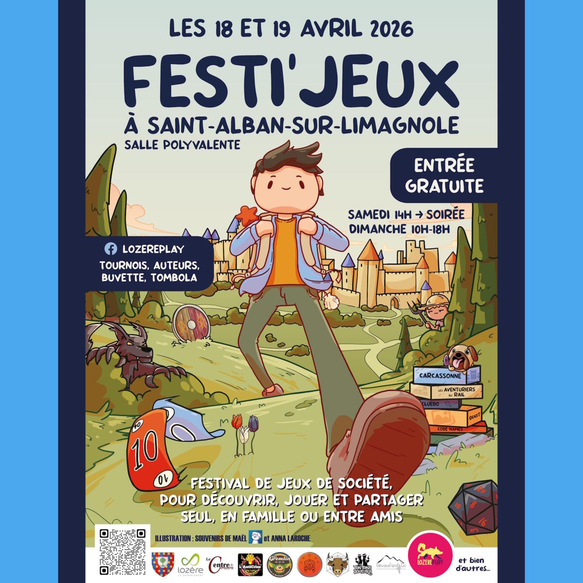 Une envie de partager un moment en famille ? De s’amuser entre amis ? De découvrir de nouveaux jeux ? Venez donc au Festi’Jeux le samedi 18 avril de 14h à 22h et le dimanche 19 avril de 10h à 18h à la salle polyvalente de Mairie de Saint Alban sur Limagnole .Vous y retrouverez de nombreux jeux à découvrir, ainsi que des tournois ! Tentez de gagner un lot au travers d’une tombola. Pour ceux qui ont envie de voyager, vous retrouverez Kaël, Maître de jeu qui sera présent pour vous emmener loin au travers du jeu de rôle !