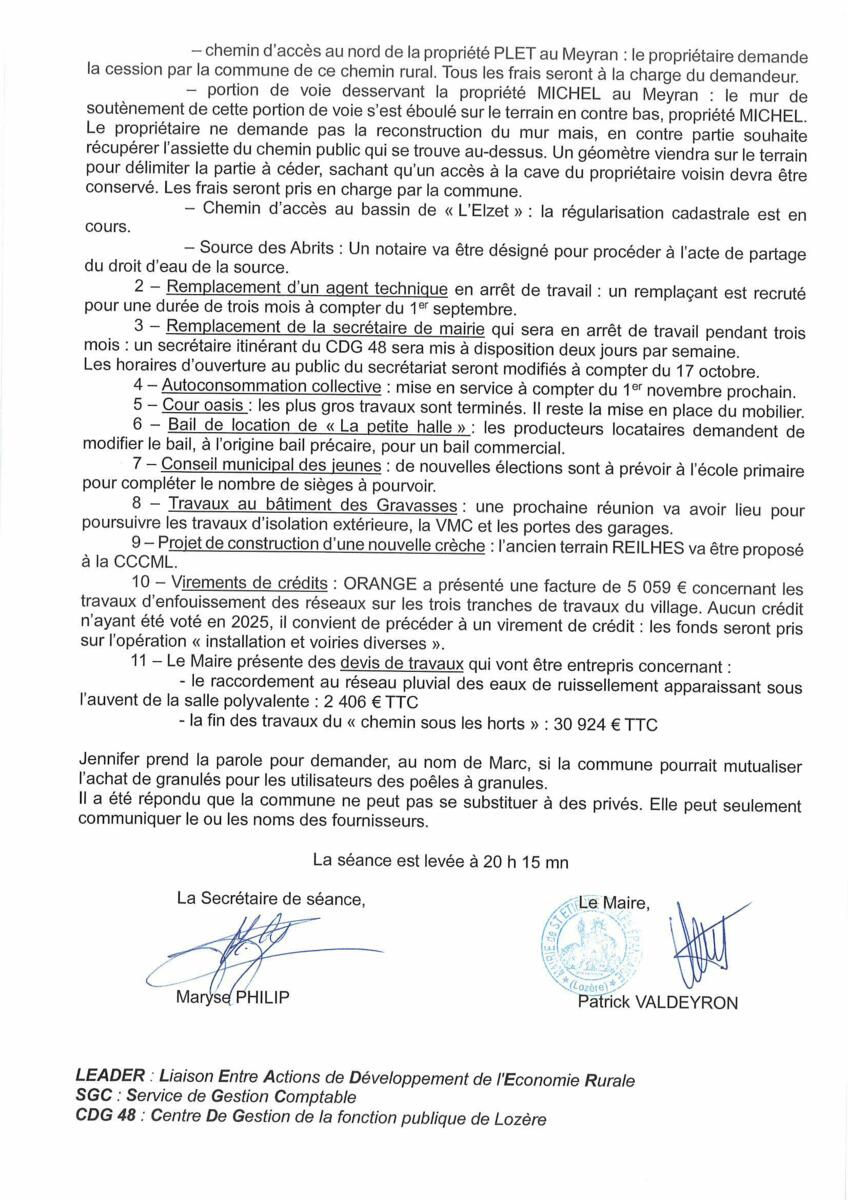 Votre mairie / Actualités / PV du conseil municipal du 02 septembre 2025
