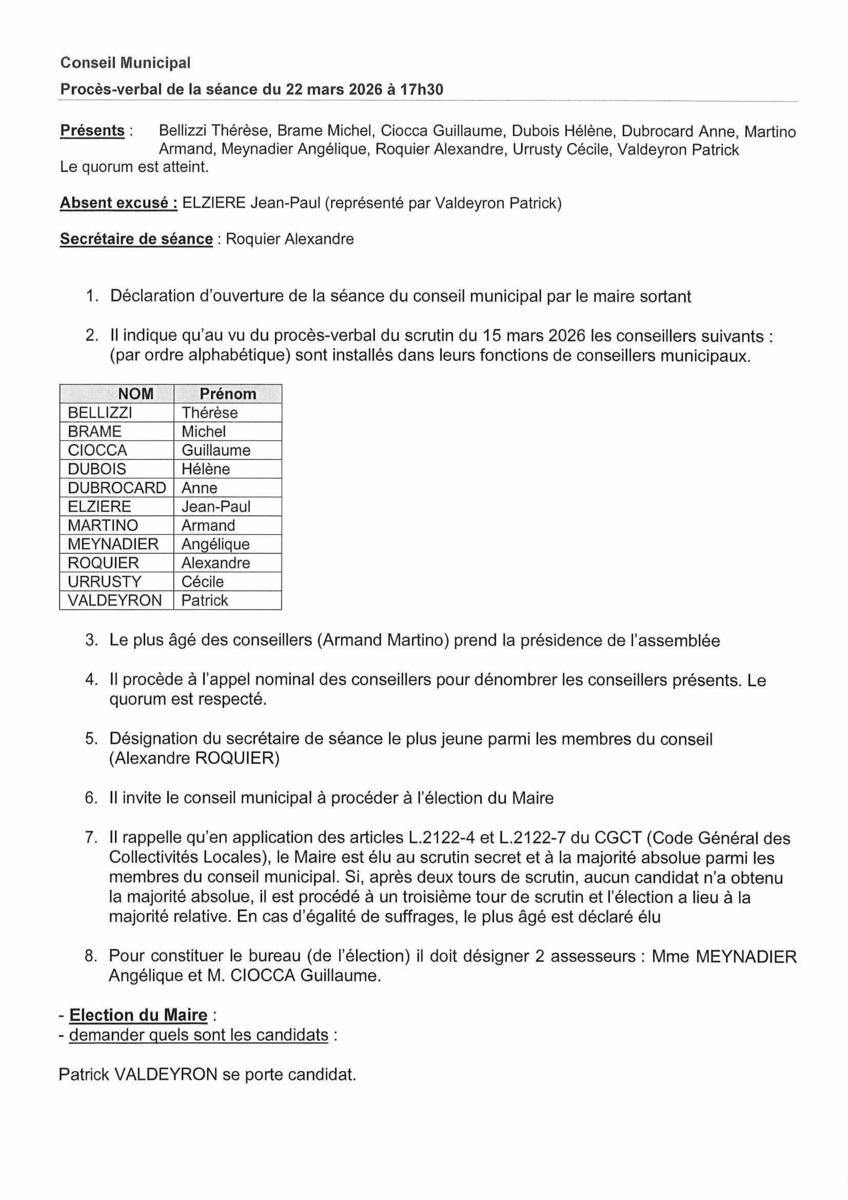 Votre mairie / Actualités / PV du conseil municipal du 22 mars 2026