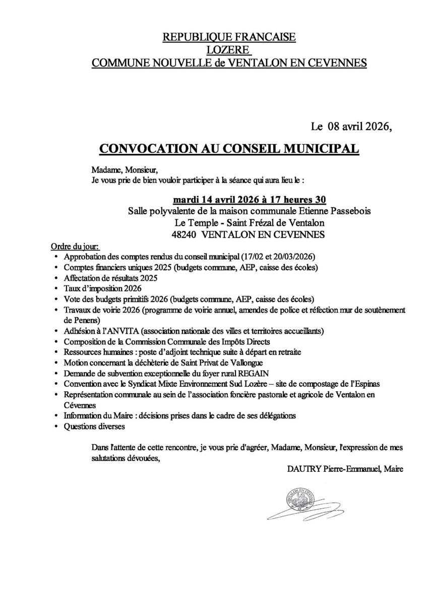 Conseil Municipal Mardi 14 Avril À 17H30 !