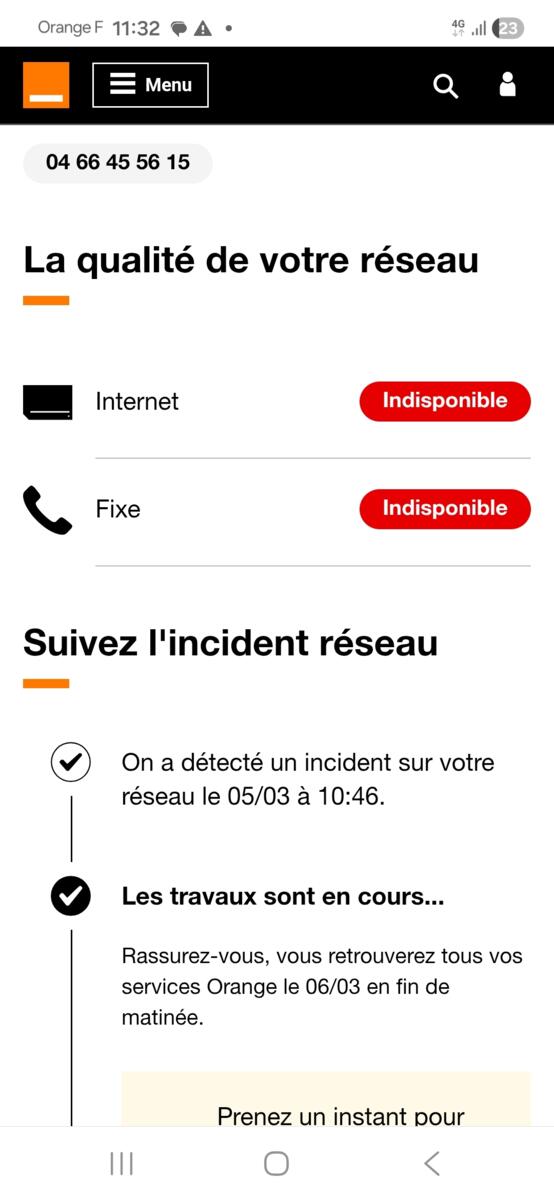 Incident Fibre À Ventalon En Cévennes 05/03/2026 Un incident réseau touche la commune et impacte les telecommunications fixes et internet. Vous pouvez toutefois contacter la mairie en cas de nécessité au 04 66 45 56 15. Le retour à la normale est prévu par Orange le 06/03 matin
