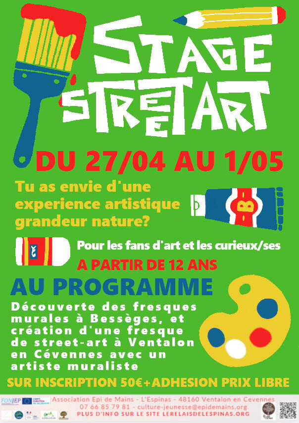 Le Stage De Street Art N'attend Que Toi ! 09/04/2026 Tu as une âme d'artiste ? Ca tombe bien il reste des places disponibles pour le stage de street art !