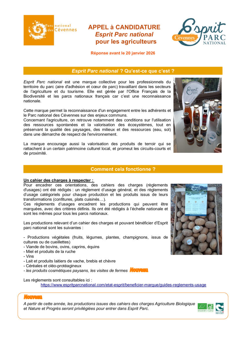Nouvel Appel À Candidature De La Marque "Esprit Parc" 06/01/2026 Voici le nouvel appel à candidatures pour adhérer à Esprit Parc en 2026 !