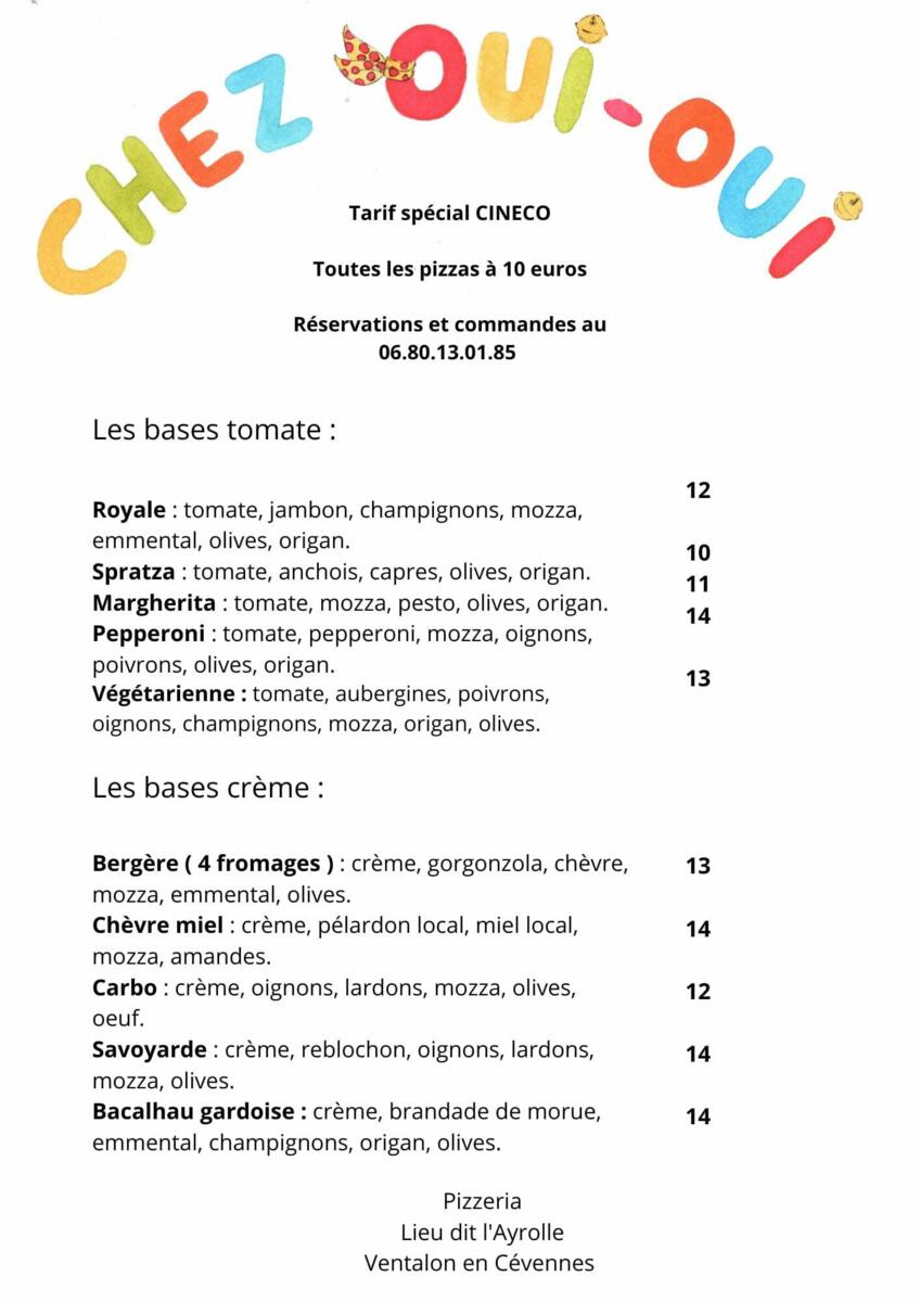 Et pour accompagner la soirée : offre spéciale Cinéco à la pizzéria Chez Oui Oui