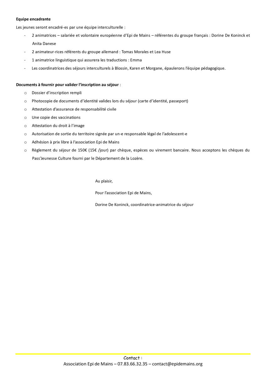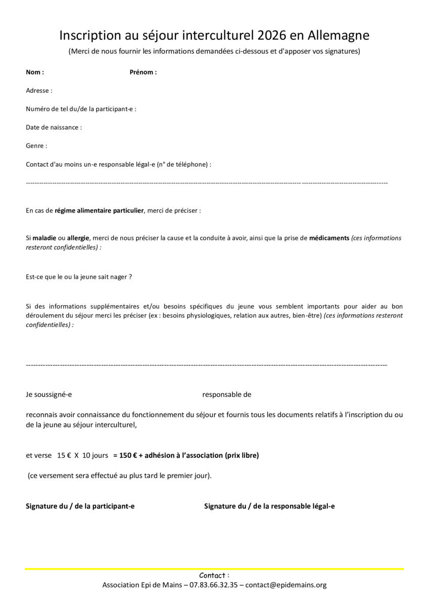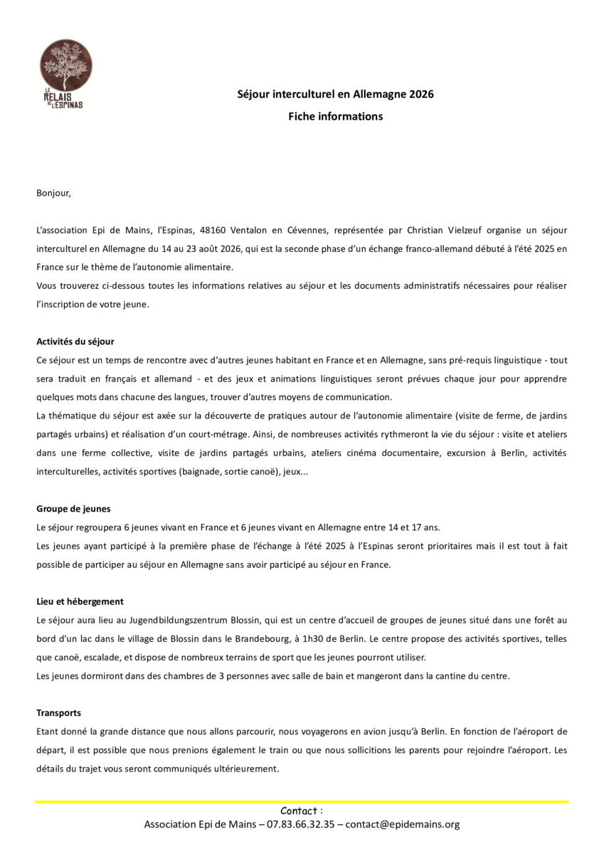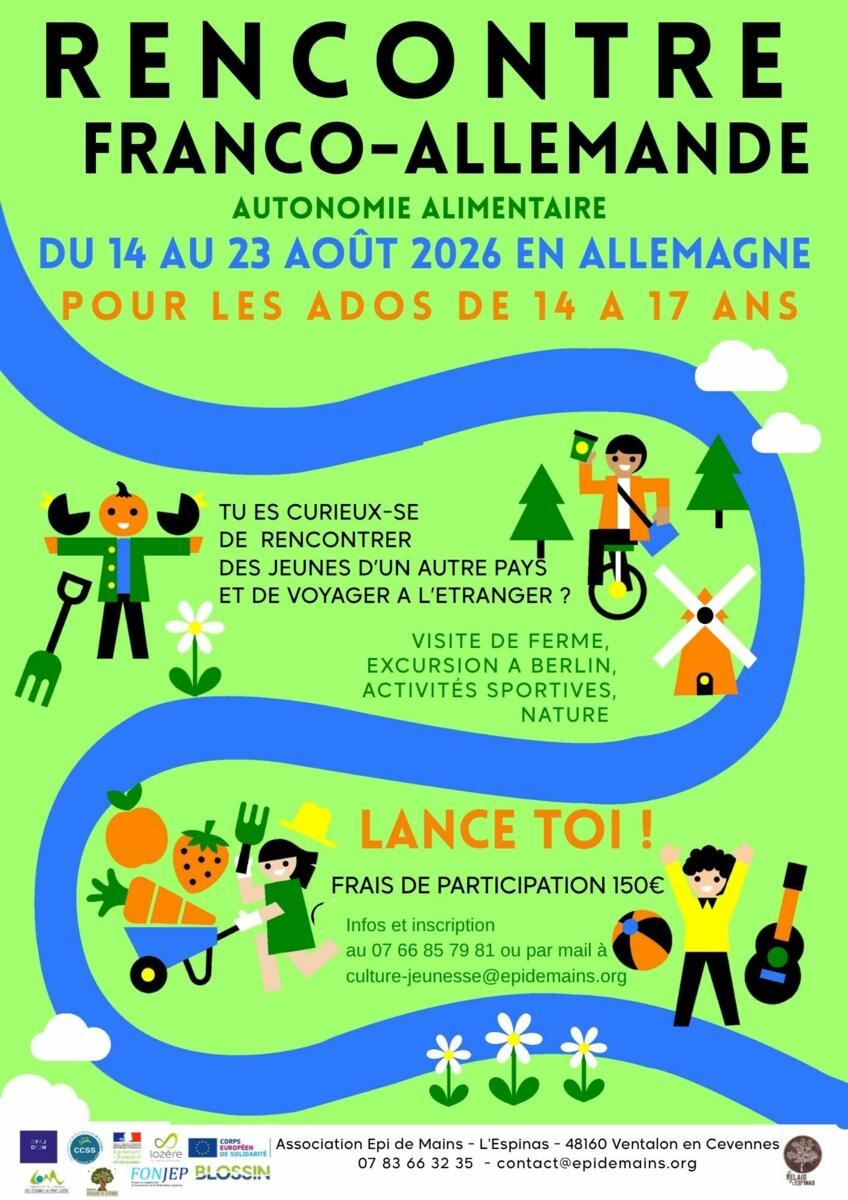 Rencontre Franco-Allemande Avec Epi De Mains 23/04/2026 Tu es jeune ? Tu as soif d'aventures ? Tu as envie de bouger ? Inscris-toi auprès d'Epi de Mains pour participer à un échange Franco-Allemand cet été !!