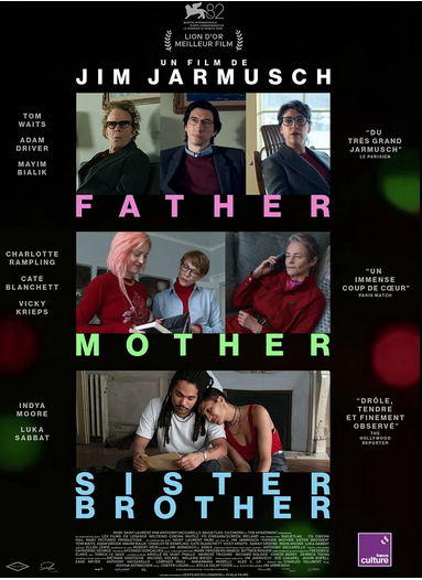 Mais ce mois-ci, on vous propose une séance supplémentaire le 4ᵉ vendredi, avec un film un peu décalé, voire carrément déjanté ! Nous vous invitons à découvrir “Father, Mother, Sister, Brother” (faut-il vous le traduire ? = “Père, Mère, Sœur, Frère”), le dernier film de Jim Jarmusch, à qui l’on doit notamment Stranger than Paradise, Down by Law, Dead Man ou encore Ghost Dog. Ce film met en scène une famille non conventionnelle — et comme souvent, ce n’est pas toujours simple d’en être les enfants…