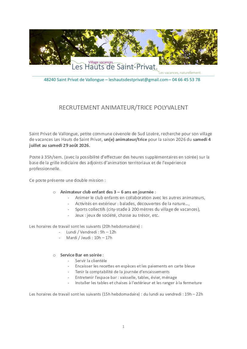 Recrutement Animateur/trice saison 2026 _ Village Vacances