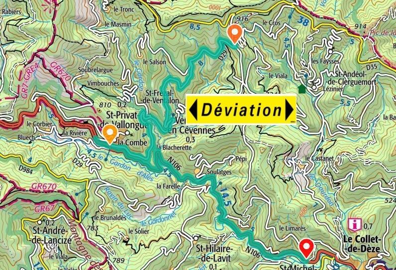 Pour se rendre du Collet de Dèze / Saint Michel de Dèze à la route des Crêtes et de la route des Crêtes au Collet de Dèze / Saint Michel de Dèze, il est conseillé de passer par la RD29 et la RN106 comme indiqué dans le plan ci-joint.