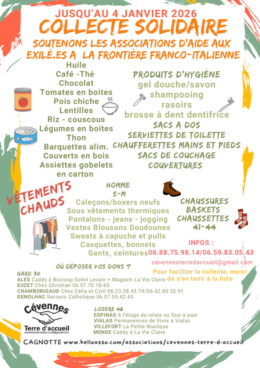 COLLECTE SOLIDAIRE pour l'aide aux exilé.es