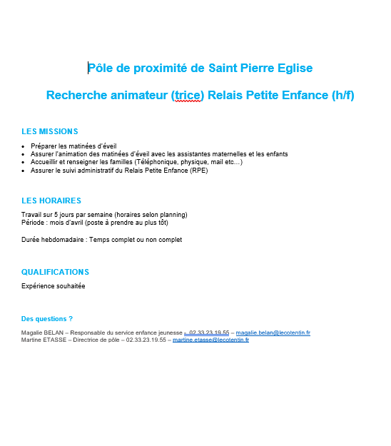 Poste animateur(trice) RPE de Saint-Pierre