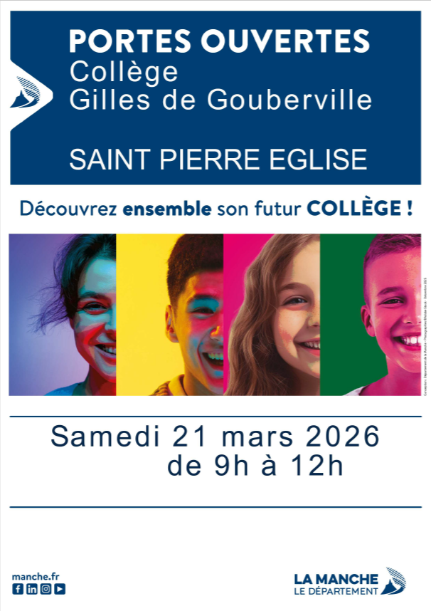 Portes ouvertes du collège Gilles de Gouberville à Saint-Pierre Église le samedi 21 mars 2026 de 9h à 12h.