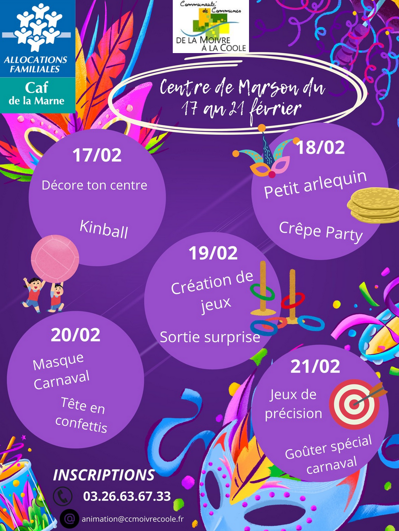 La CCMC vous propose un accueil de loisirs la 1ère semaine à Courtisols et la 2ème semaine à Marson.