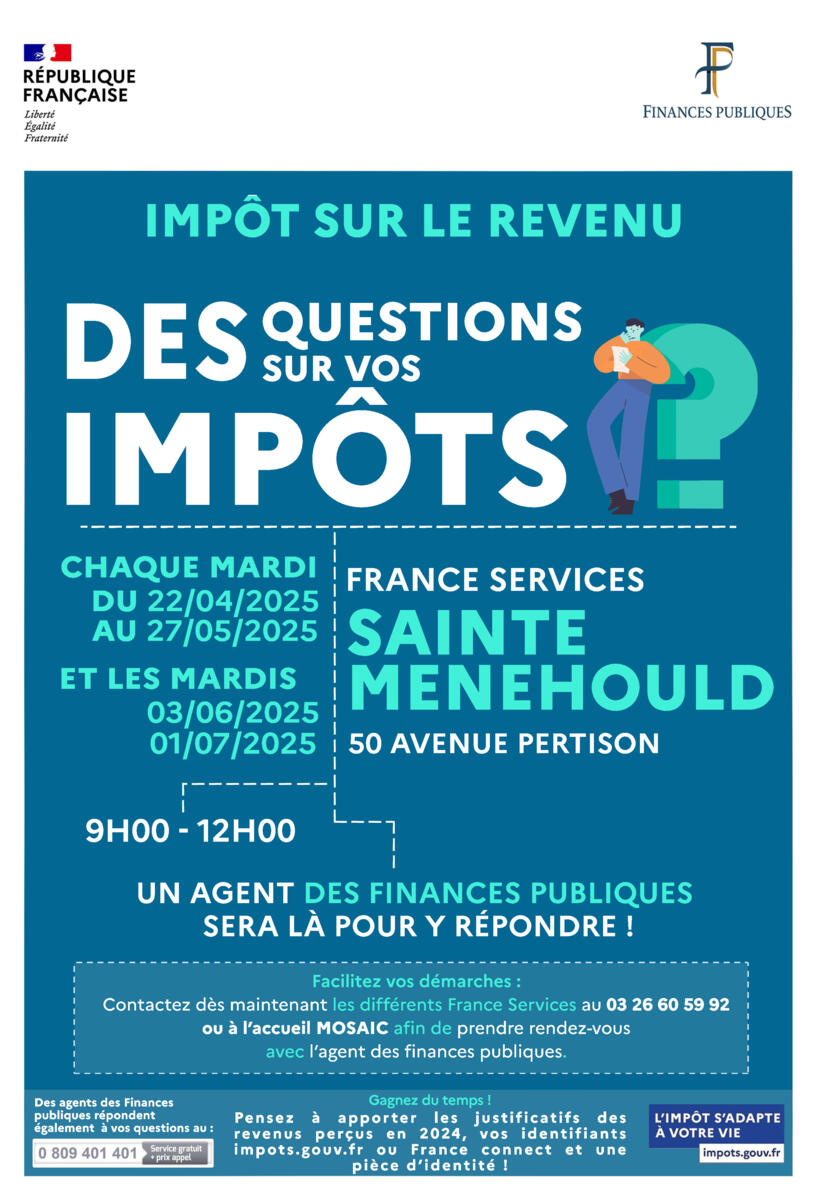 Afin de répondre à vos différentes questions, un agent des Finances publiques tiendra des permanences à la France Services de Sainte-Ménehould :