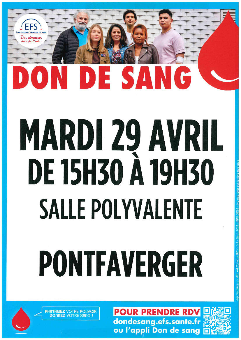 Après-midi don du sang à Pontfaverger mardi 16 décembre