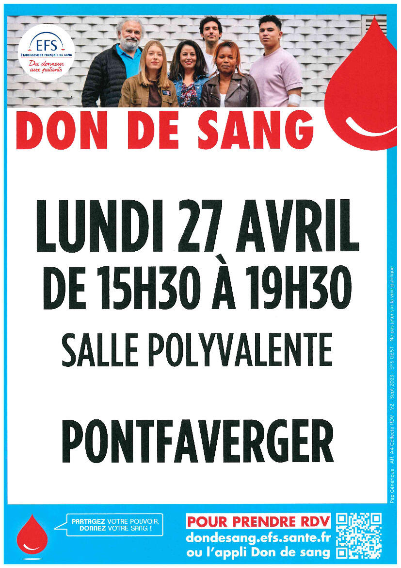 Après-midi don du sang PONTFAVERGER le lundi 27 avril